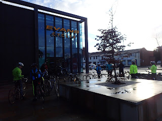 We did a little loop round to Dodleston, and then back up the Wrexham Road to the garden centre. That is when the fun really started! Our other new lady realised she could not get her foot off her pedal (a screw had come out, leaving the cleat loose and so the shoe could not pivot out). She decided to take her shoe off, to much jollity, and padded through with her bike to the cafe.